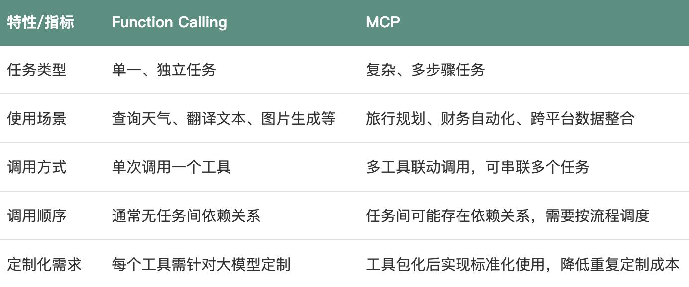 与Function Calling相比,MCP更像是一个打包好的工具箱。比如,刚刚提到的工具可以打包成一个「维修工具包」。