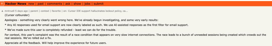 不久前,Cursor的联合创始人Michael Truell在HN平台上公开致歉,承认这次误解确实给用户带来了不便。他表示: