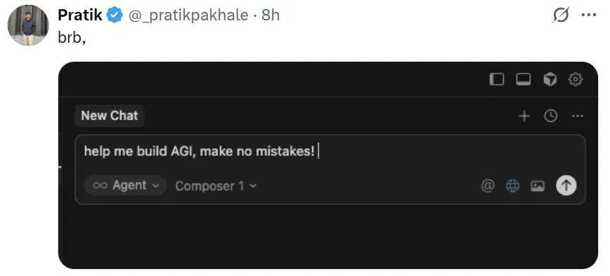 有趣的是,已经有用户开玩笑地提议用Cursor 2.0来构建AGI。