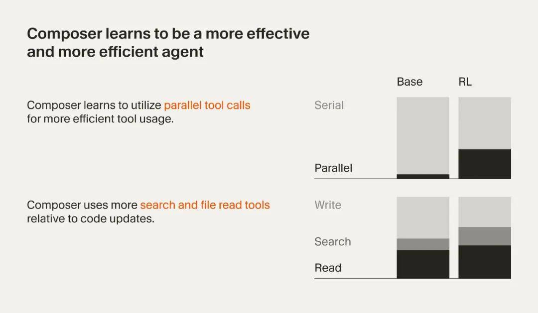 开发者们发现,他们希望使用一种既智能又能互动的模型,这样才能保持编码时的专注和流畅。因此,在研发过程中,他们测试了一个名为Cheetah的原型智能体,以深入理解快速智能体模型的潜力。Composer则是在此基础上的更智能化升级版,以足够的速度支持交互式编码体验,让整个过程始终保持愉悦和顺畅。