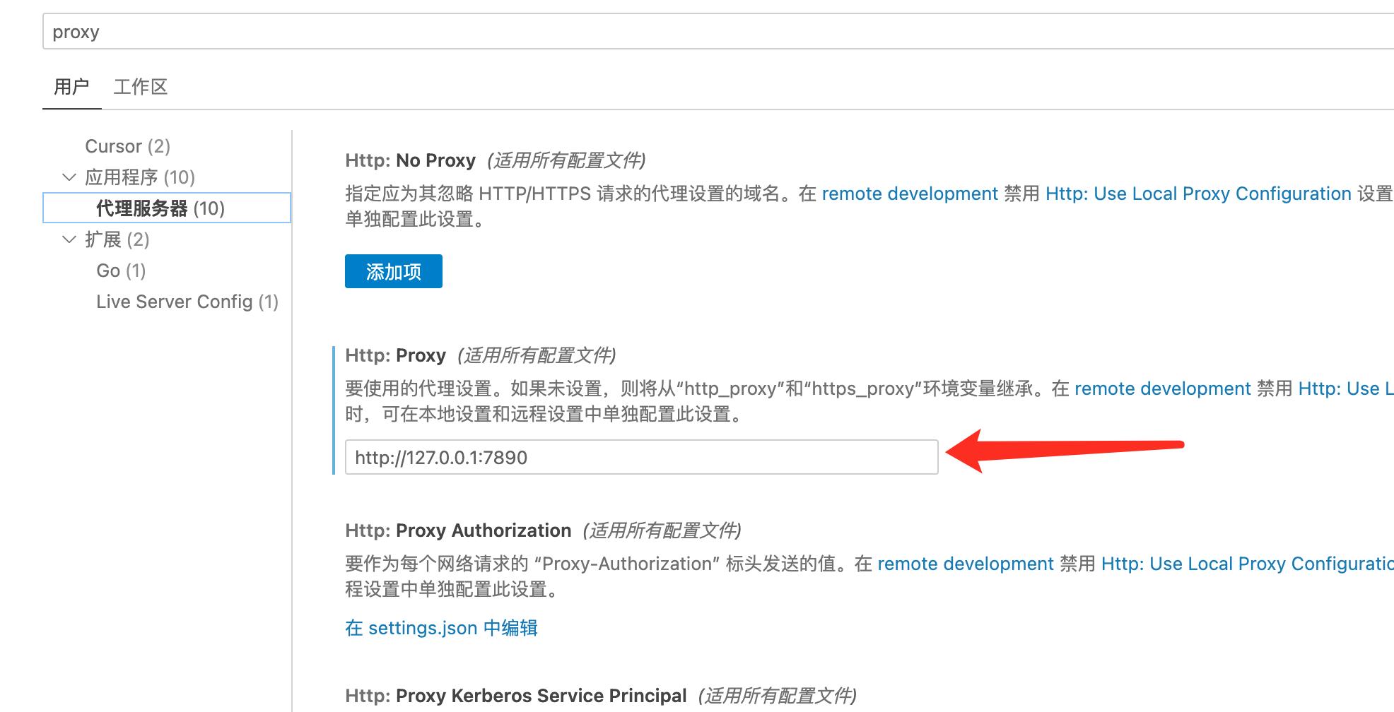 搜索 proxy 后,你可能会看到两个需要配置的地方: