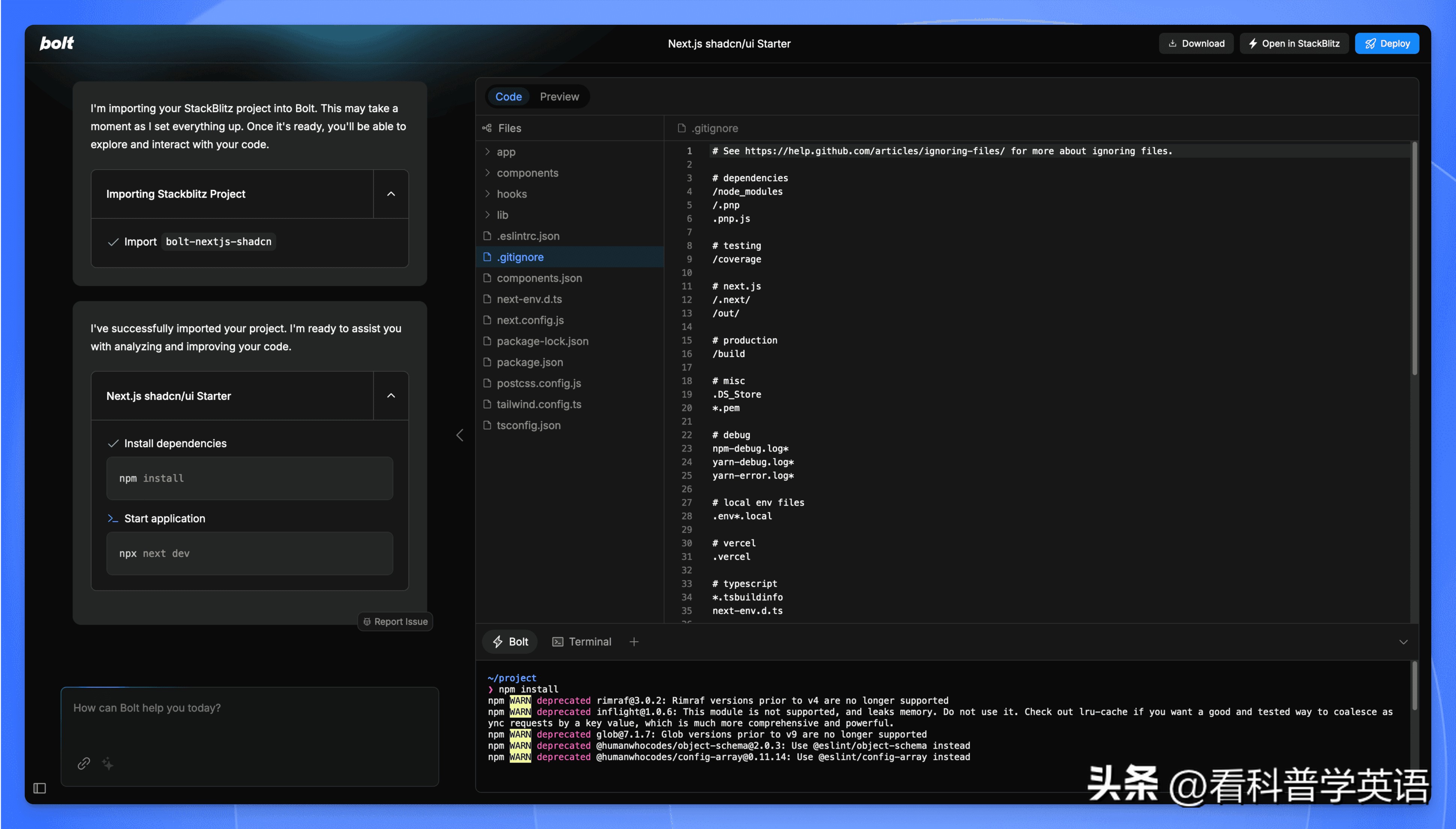不过 Bolt.new 是基于 Web 的,和本地 IDE 开发体验有点割裂,不过用来初始化项目是极好的。