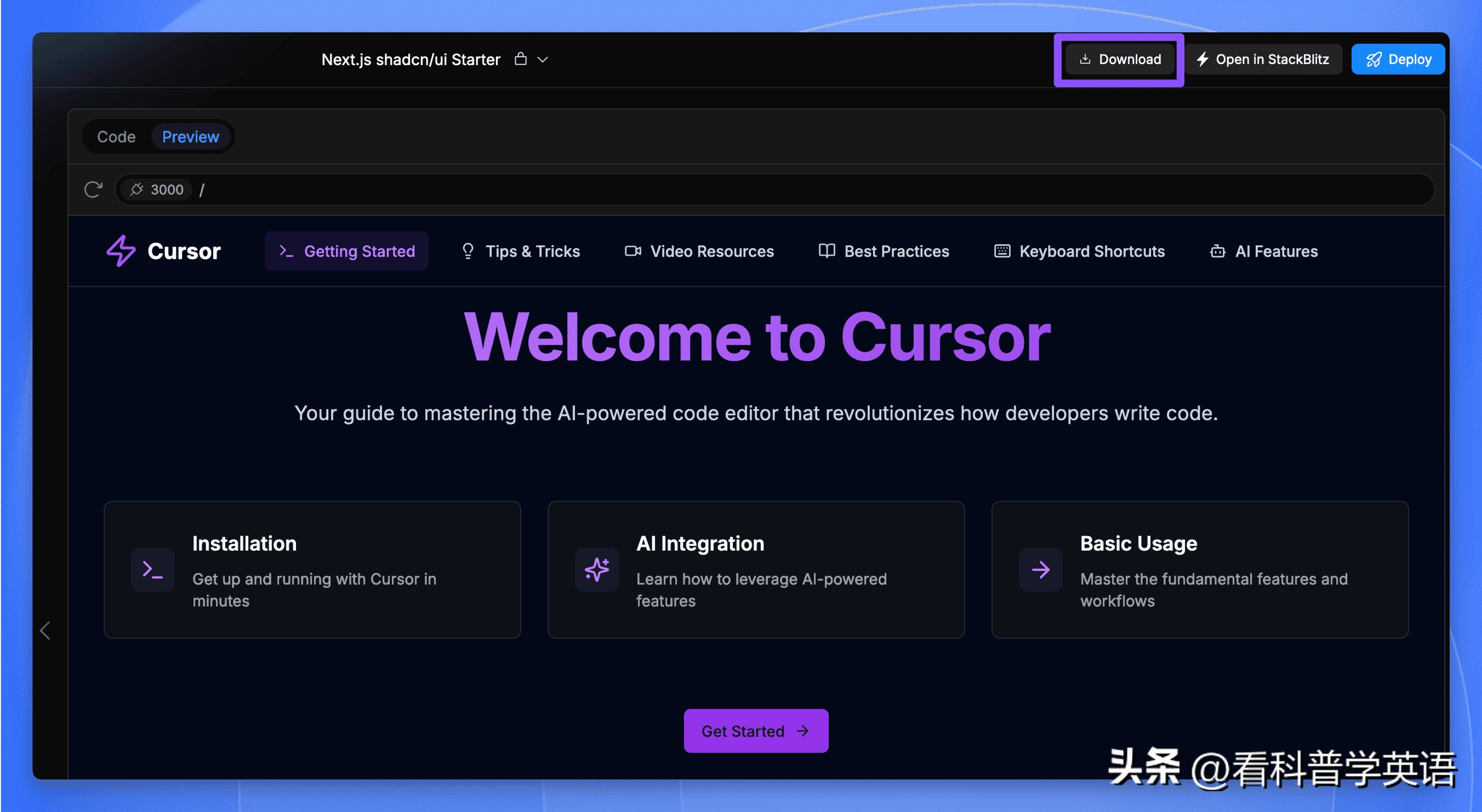 这个项目是一个导航站,导航站的主题是“集成了 AI 技术的强化型代码编辑器 Cursor”的各种入门教程和实用技巧以及视频资源。请将网站中所有的英文都改成中文文案。请使用 CoT 思维链一步一步思考以完成我的任务
