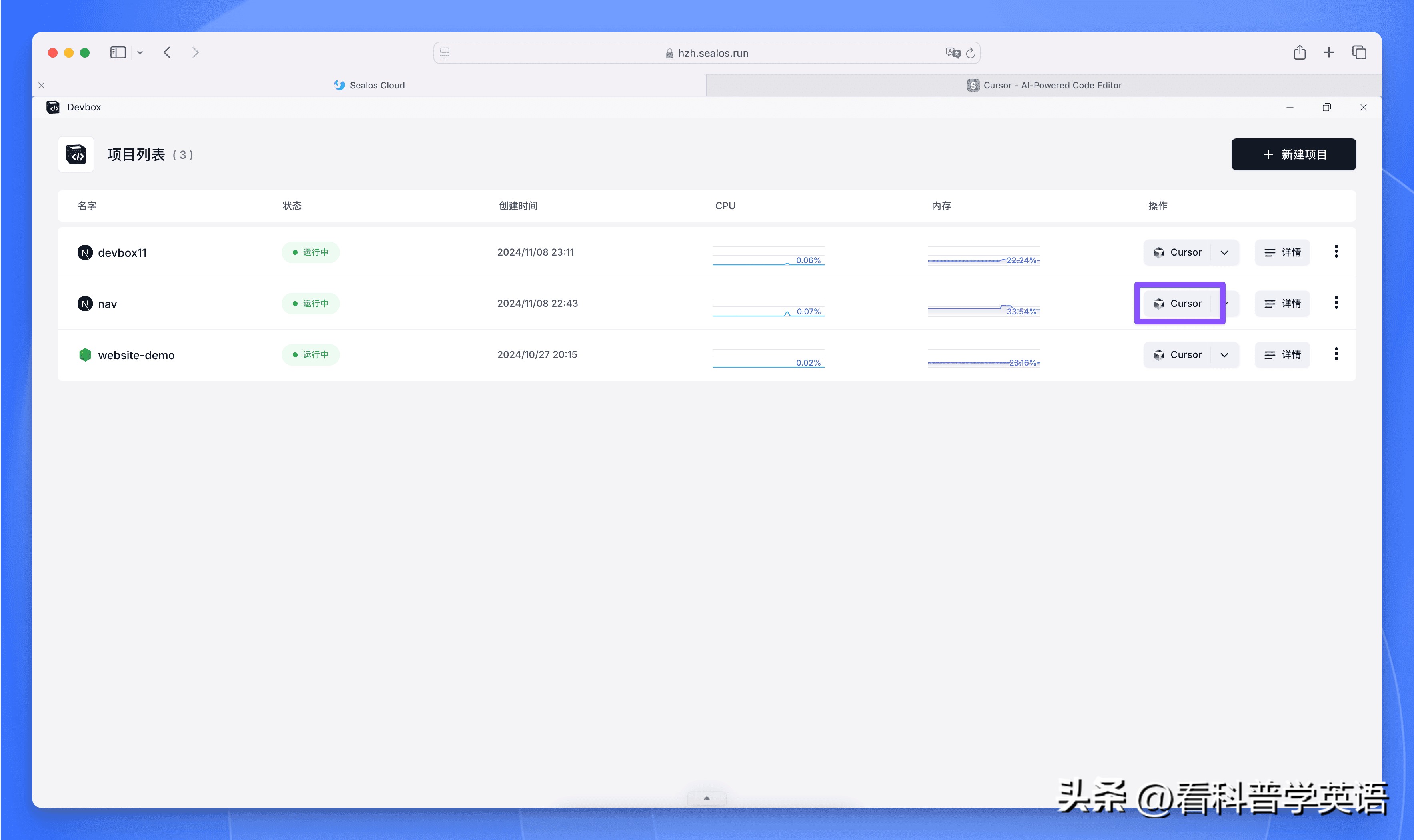 为了快速配置开发环境,我们可以选择使用 Sealos DevBox[1],它可以一键配置开发环境,并且自动配置了公网域名和 HTTPS 证书,非常强大。