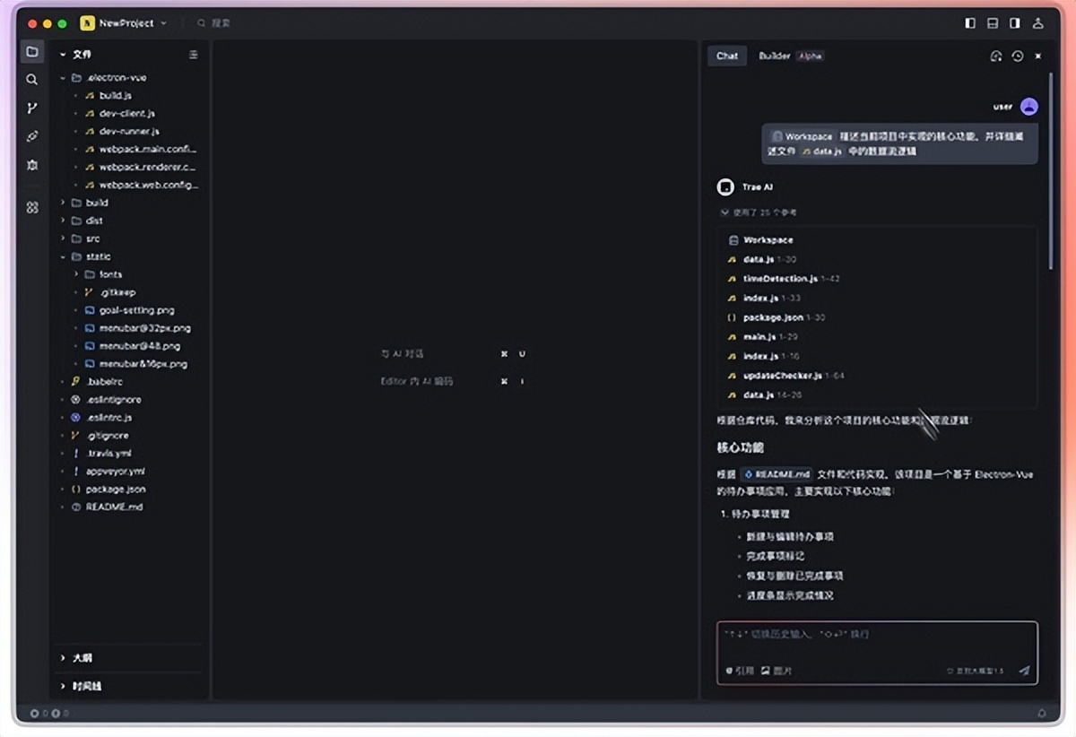 此外,Trae能够深入解析你的代码库,并与IDE内信息深度结合,更加准确地识别需求,从而提供更优质的解决方案。