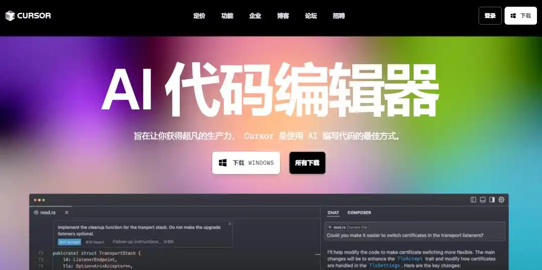 智能补全代码:当程序员在编写代码时,Cursor能智能地预测并补全剩余部分,提高编码速度。
