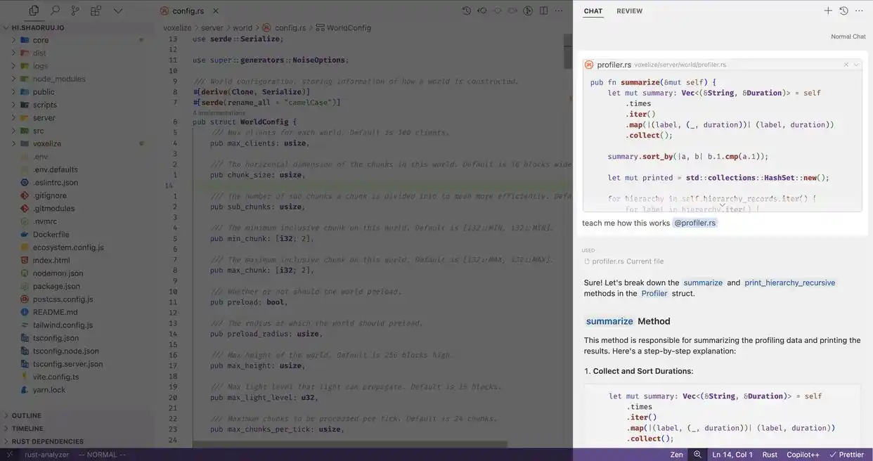 我主要利用它来解析源码或一些复杂的代码,特别是在深入学习 Solid 时,这个功能极大帮助我理解其原理。虽然有时它的答案可能不是特别准确,但分析过程往往能激发我的思考,让我突然之间领悟到某些道理。