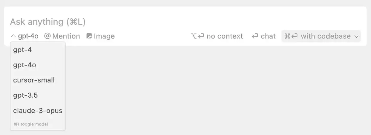 Cursor 自身还提供了多种模型支持,用户亦可自定义添加更多额外模型进行使用。
