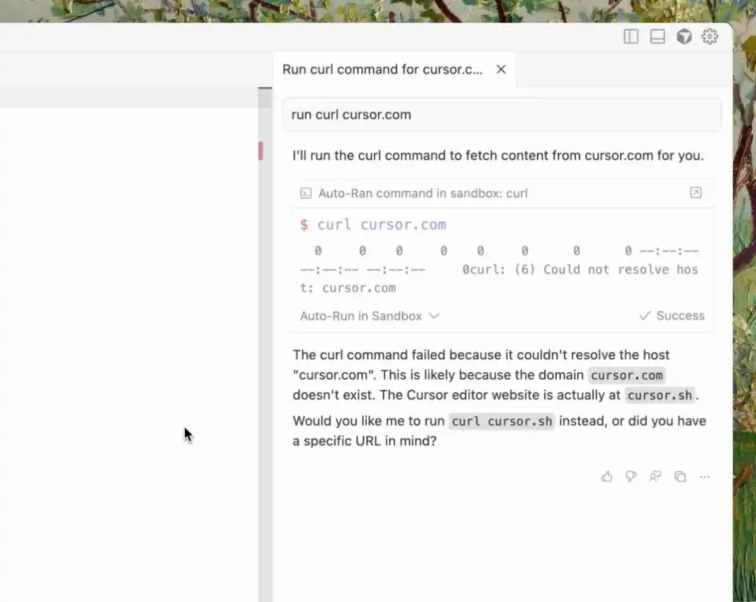 在macOS系统中,Agent命令默认在一个安全的沙盒环境下执行,具备对工作区的读取与写入权限,但并不允许访问互联网。