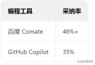 效率方面的数据:百度内部超过 80% 的工程师使用 文心快码,每提交 100 行代码就有 27 行由其生成,而 Copilot 在复杂业务场景的使用率仅约 35%。