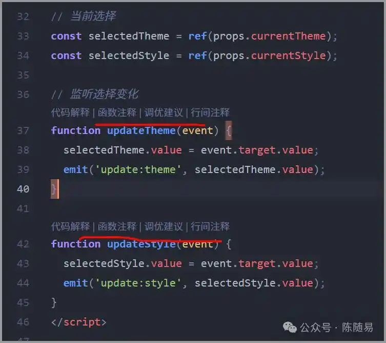 当我点击“解释代码”时,当前函数的解释详尽无遗,覆盖面广泛,让人不再困惑。