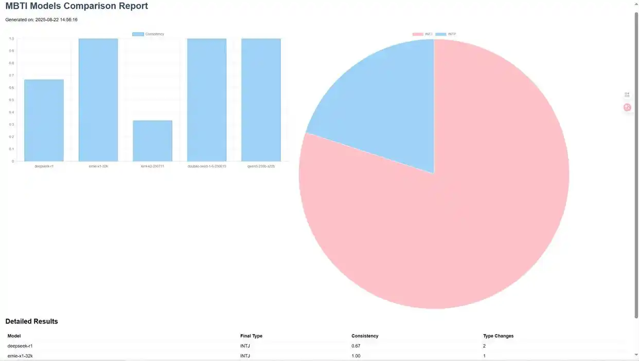 为何要为大模型进行MBTI性格测试?在社交媒体上,MBTI作为一种个性标签,能够在一定程度上反映个人的性格特征、价值观、沟通方式及社交态度。既然大模型能够模拟人类思维,难道它们也具备MBTI特征吗?在职业发展和人际交往的场合中,人们常常依据MBTI进行参考。因此,MBTI性格测试也可以作为一种启发式工具和交流框架,帮助理解、比较和预测各种AI模型的行为模式、倾向及潜在局限性。