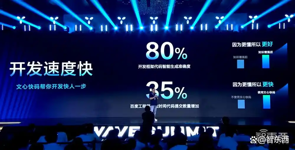 在百度内部的应用中,利用文心快码生成的开发框架代码的准确率达到了80%,而单位时间内提交的代码数量则提升了35%。