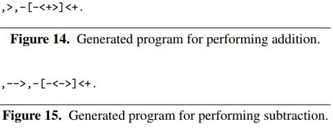 AI Programmer能在92,400代之后生成加法程序;在177,900代之后生成减法程序,如图15所示。