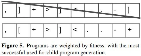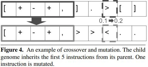 为了创建后代,父母将其基因的一部分交给孩子,这个过程如图4所示。除了继承父母的编程指令外,每个孩子也可能会遇到突变,也就是对特定基因增加受控但随机的扰动。这导致特定基因的值发生修改,使所得到的编程指令发生变化,进而改变整个程序。
