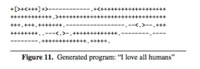 经过6,057,200代后,AI Programmer成功生成了”I love all humans”,如图11所示。