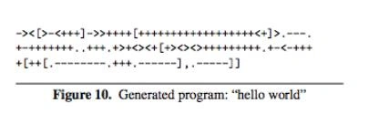 一开始,研究人员让AI Programmer生成了一个非常简单的程序来输出“hi”。经过5700代后,测试成功。生成代码如图9所示。