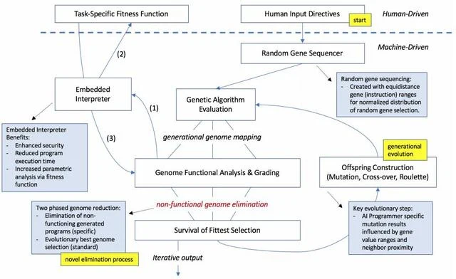 研究人员指出,AI Programmer的适应性测试软件框架具有延展性,并已被开发。用户可以自己设计无数的定制化软件,最终指导系统的遗传算法(GA)生成和软件程序演变。