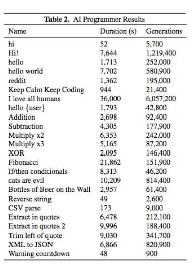 研究人员表示i,他们能用AI Programmer生成很多软件程序。表2是所生成程序的名单。