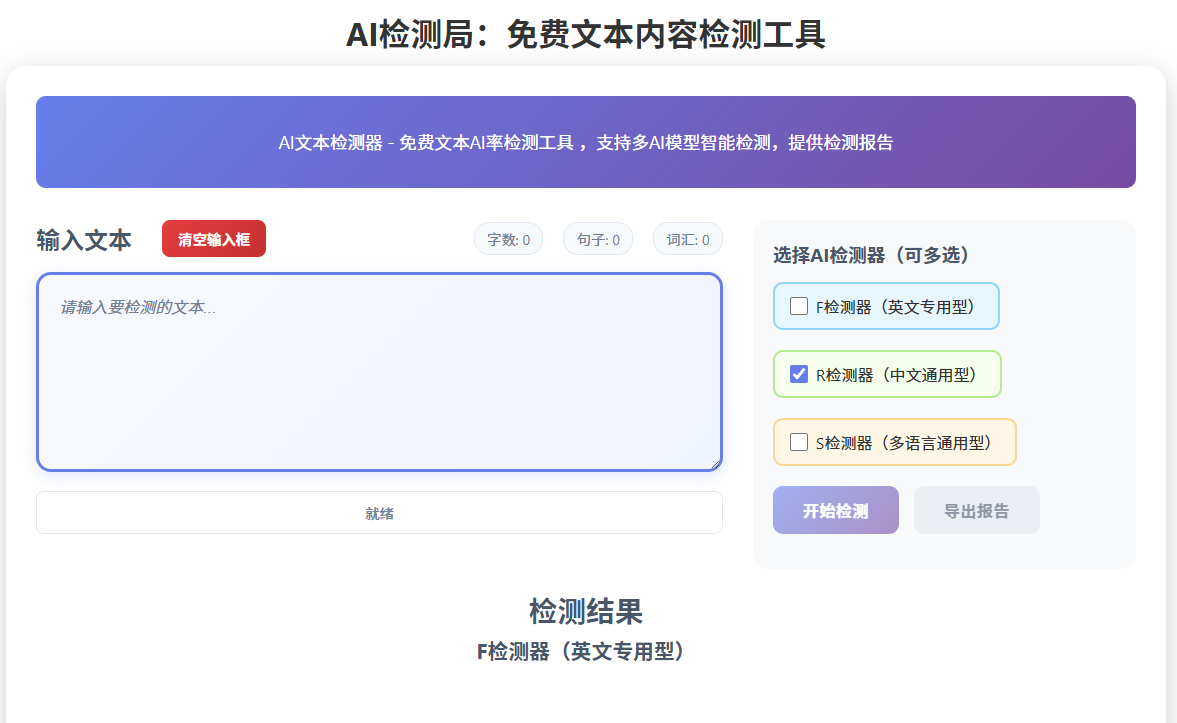 AI检测局提供免费、精准的多语言AI文本内容检测服务